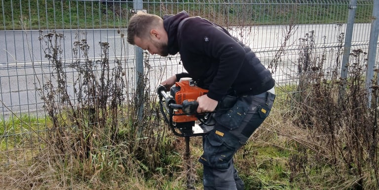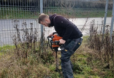 Nous intervenons directement sur le terrain avec notre équipement professionnel : tarière motorisée, camionnette et surtout, le SIG PERMEA, la machine de référence dans le domaine